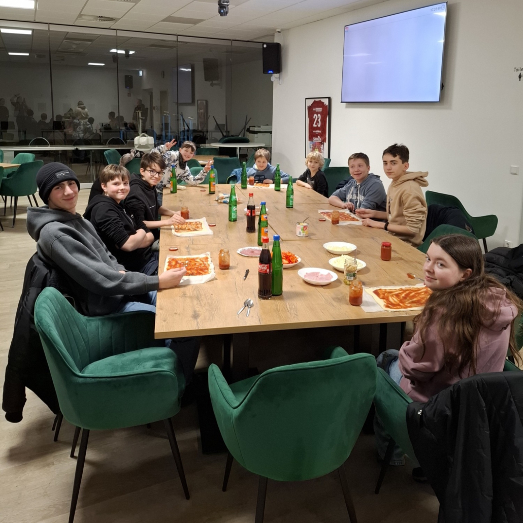 Für das leibliche Wohl war ebenfalls gesorgt 🍕: Jeder konnte seine Pizza selbst belegen, bevor sie gemeinsam gebacken und anschließend mit großem Appetit verputzt wurde 😋