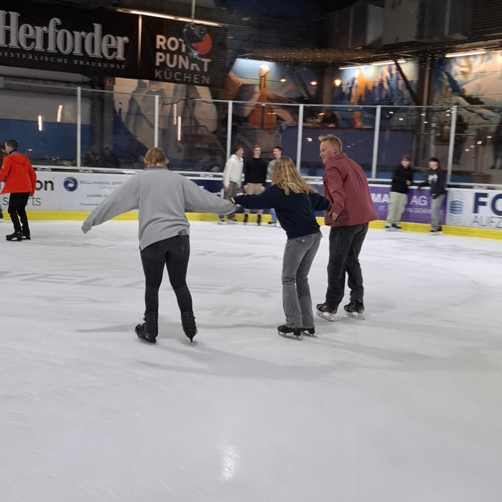 Gemeinsam mit dem Kronprinzenpaar Jasmin und Frank ging es für alle in die Eishalle nach Herford. Schon auf der Fahrt war die Stimmung ausgelassen, und vor Ort wurde es dann richtig spannend. Für viele der Kinder war es das erste Mal auf dem Eis, was natürlich für jede Menge Aufregung, aber auch für viele lustige Momente sorgte. ❄